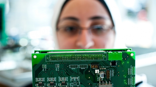 Faculty in the Power Electronics and Power Systems area at NC State conduct research in the fields of electrical power systems, power electronics systems, power management microsystems and power semiconductor devices. The majority of worldwide electric power is processed through some form of power electronics and much of this energy is wasted. Our research is making these systems more efficient and will save millions of kilowatt hours every year. In addition to the FREEDM Systems Center, NC State is also home to the PowerAmerica Institute, part of the National Network for Manufacturing Innovation, with a mission to accelerate the manufacture of wide bandgap power electronics. The Advanced Transportation Energy Center is developing technologies to enable widespread adoption of plug-in vehicles. The Advanced Diagnosis, Automation, and Control Laboratory applies the techniques of collaborative and distributed control to battery management, smart grid and building energy management. The Laboratory for Packaging Research in Electronic Energy Systems is using 3D printing technologies of ceramics, metals and polymers to provide rapid, flexible methods for physically creating unique power circuits.